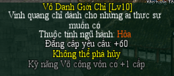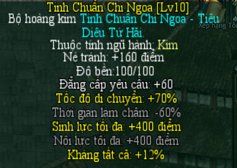 | Mảnh Ấn Tính Thô - Ghép tại NPC Giám Định Quan ( thành Tương Dương ) - 50 mảnh sẽ ghép được Ấn Tính Võ Lực ( + 30 sức mạnh ) ( HSD 15 ngày ) - 50 mảnh sẽ ghép được Ấn Tính Linh Hoạt ( + 30 thân pháp ) ( HSD 15 ngày ) - 50 mảnh sẽ ghép được Ấn Tính Khí Công ( + 30 nội công ) ( HSD 15 ngày ) - 50 mảnh sẽ ghép được Ấn Tính Huyết Thanh ( + 30 sinh khí ) ( HSD 15 ngày ) |